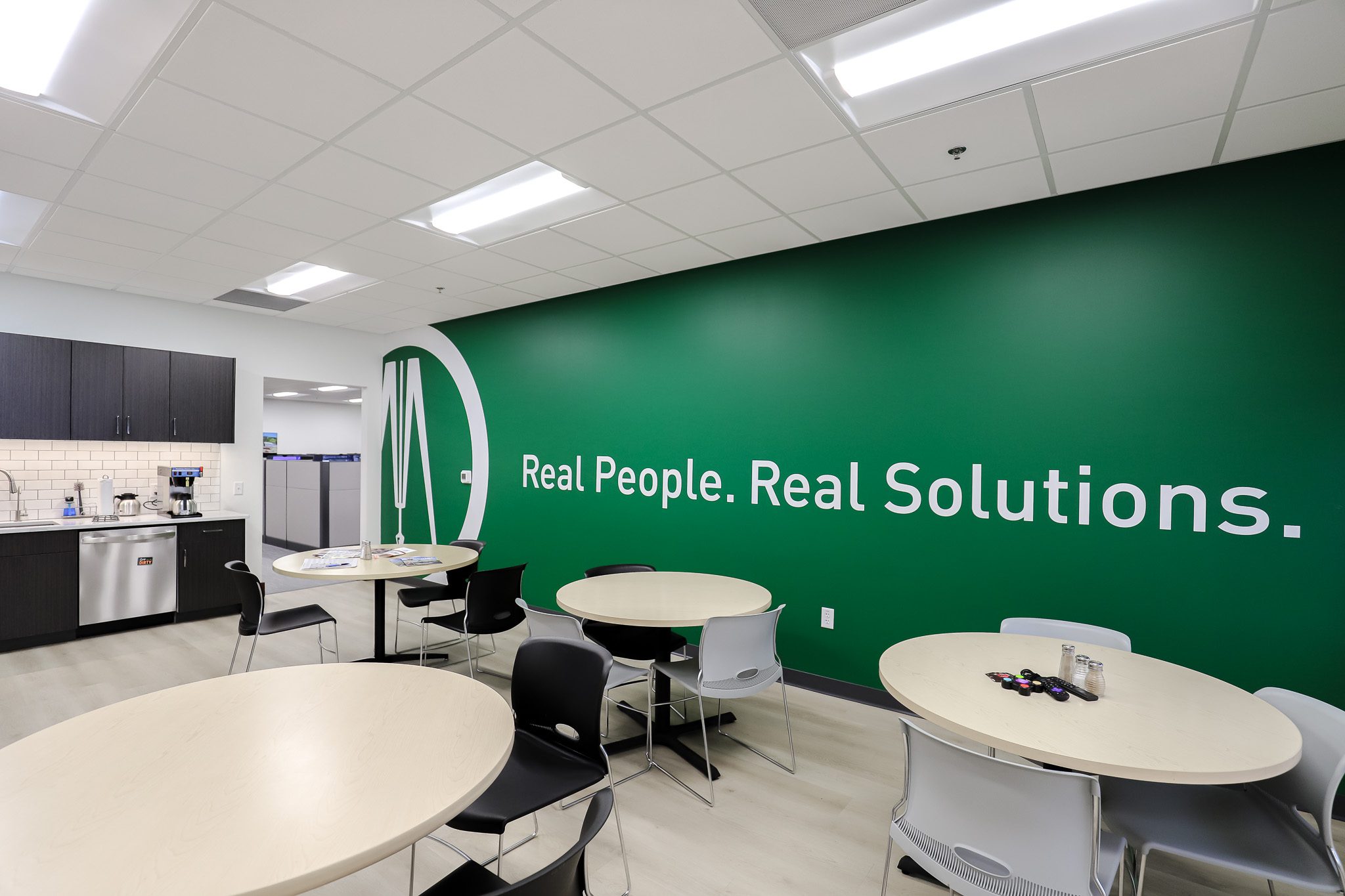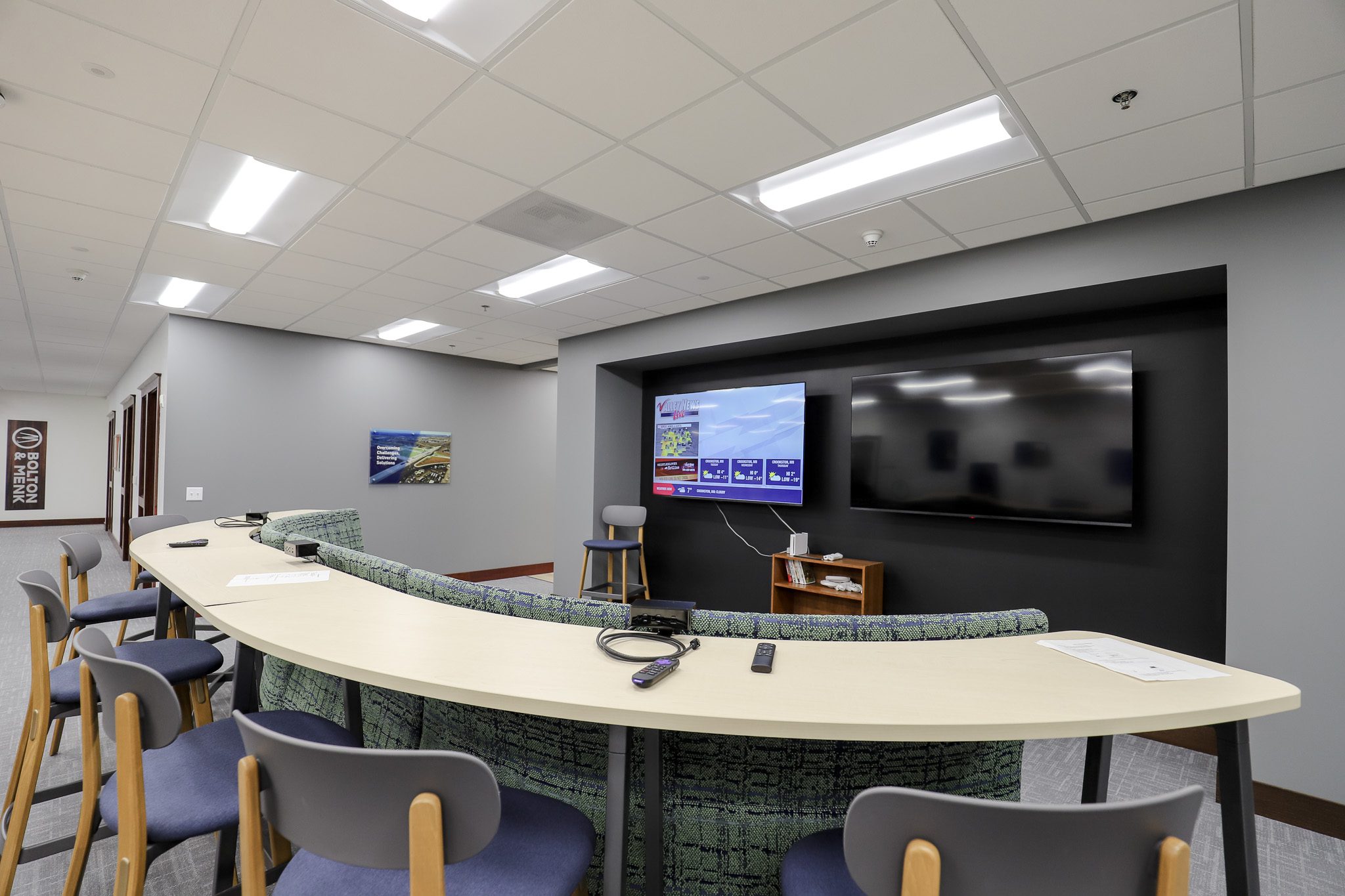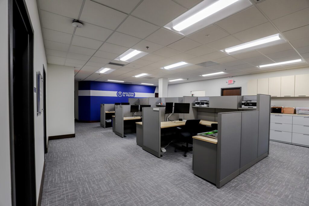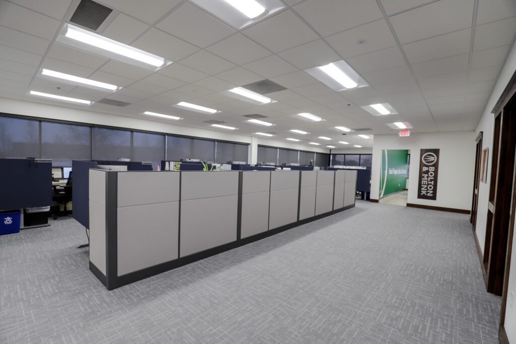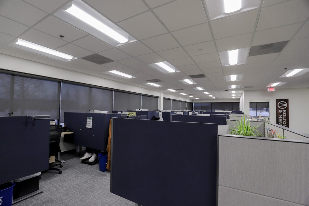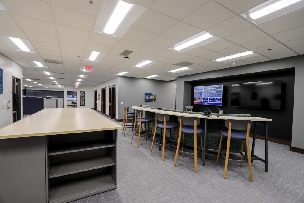 Lighting upgrades supported that same goal. The team replaced 150 ballasted fluorescent fixtures with energy-efficient LED lighting, lowering operating costs and improving overall performance while making the space feel brighter and more comfortable for day-to-day work.