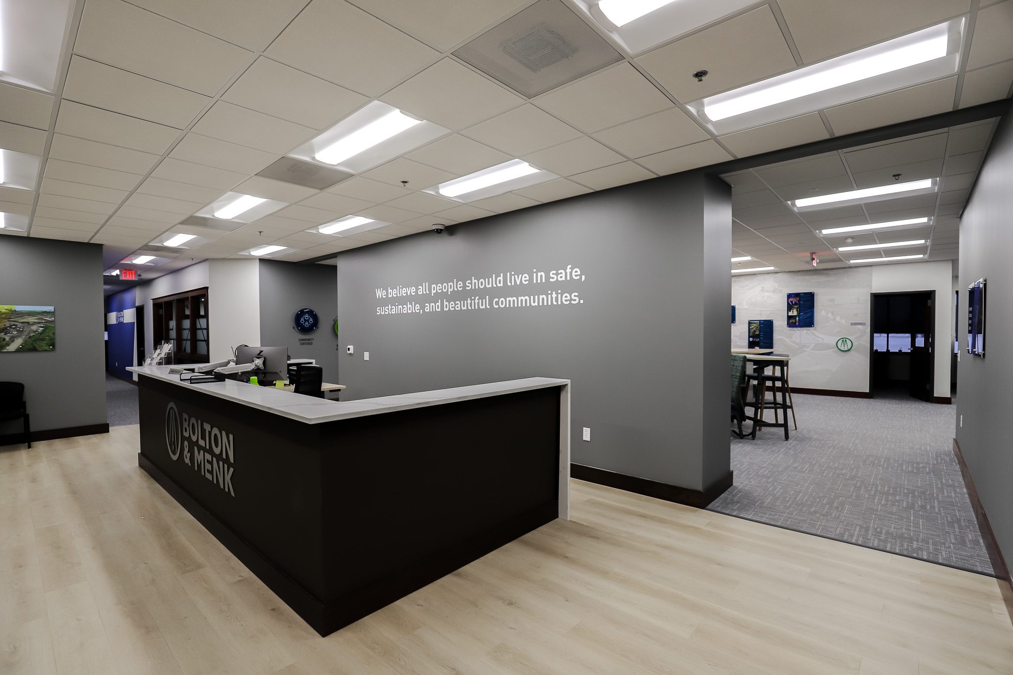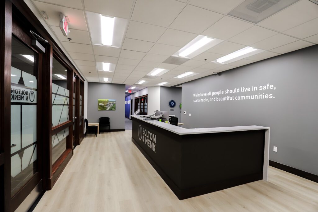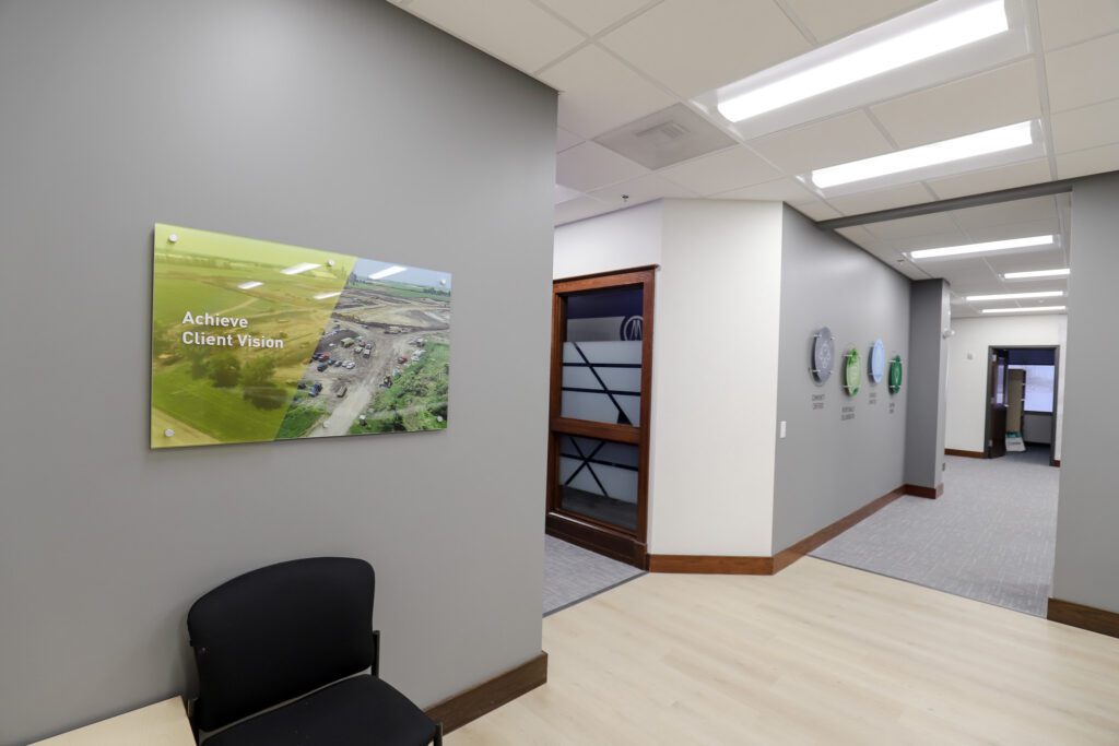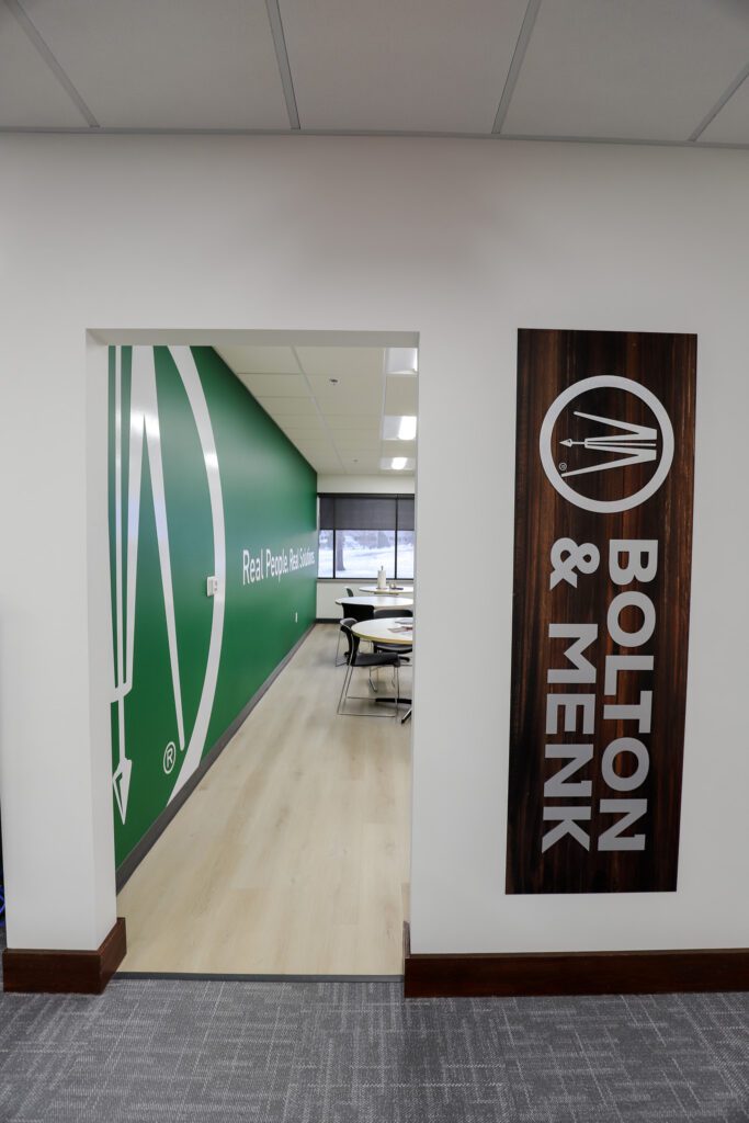 Great States Construction transformed an unremarkable office space into something modern that reflects Bolton & Menk’s brand while supporting their commitment to sustainability.