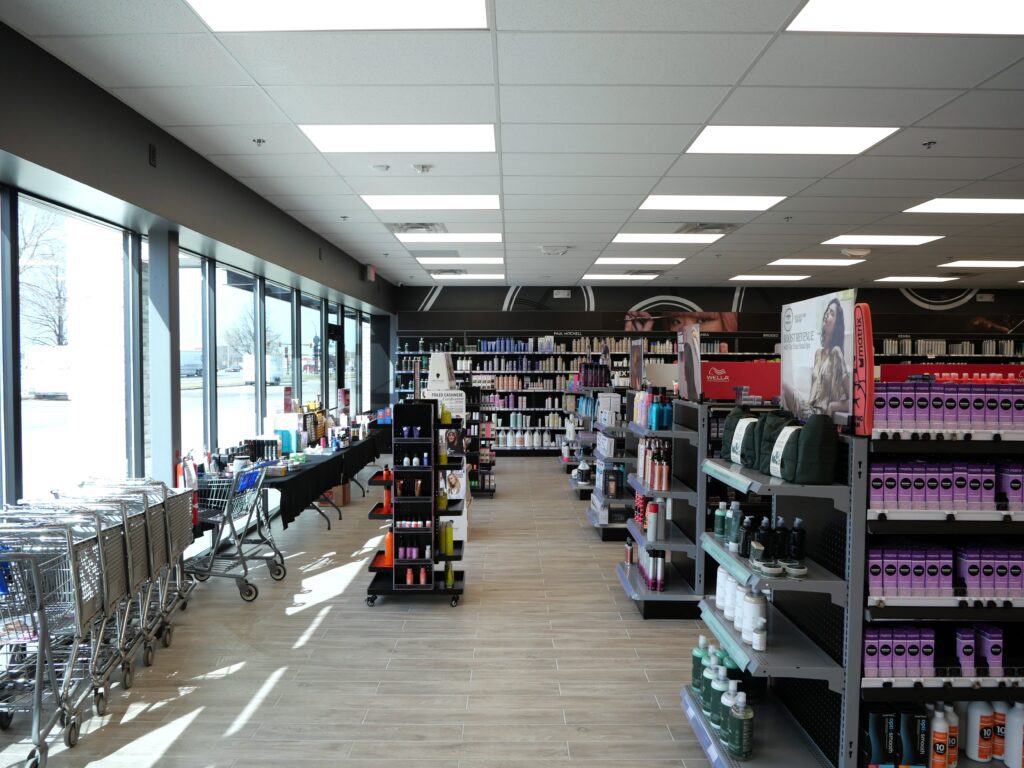 This 3,600-square-foot retail build-out was designed to support the a high-traffic beauty supply environment while staying true to the brand’s clean, vibrant look.