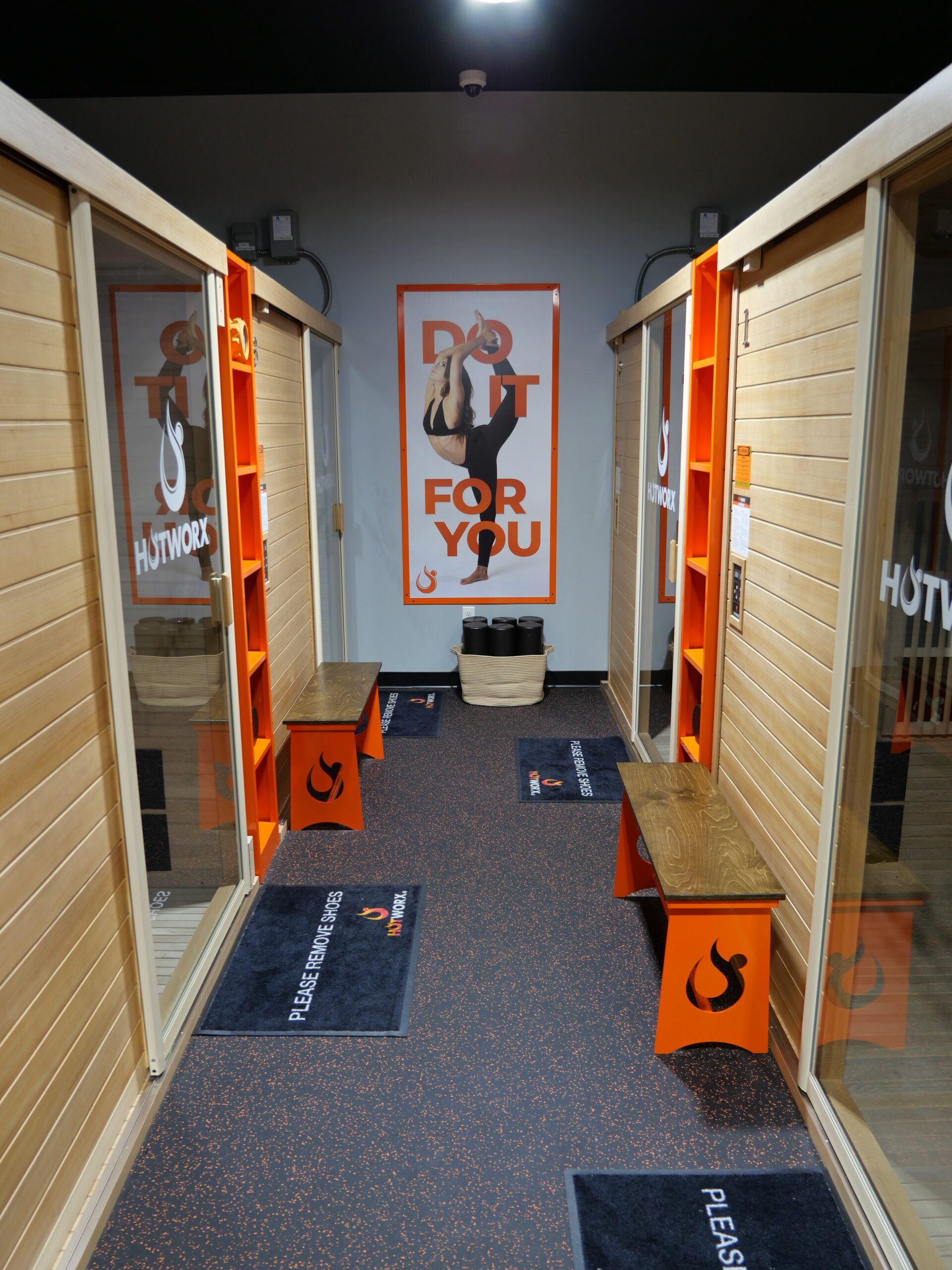 The space is centered around HOTWORX’s signature infrared saunas, supported by updated electrical systems. Outside of the saunas, a well planned HVAC system keeps the rest of the space comfortable.